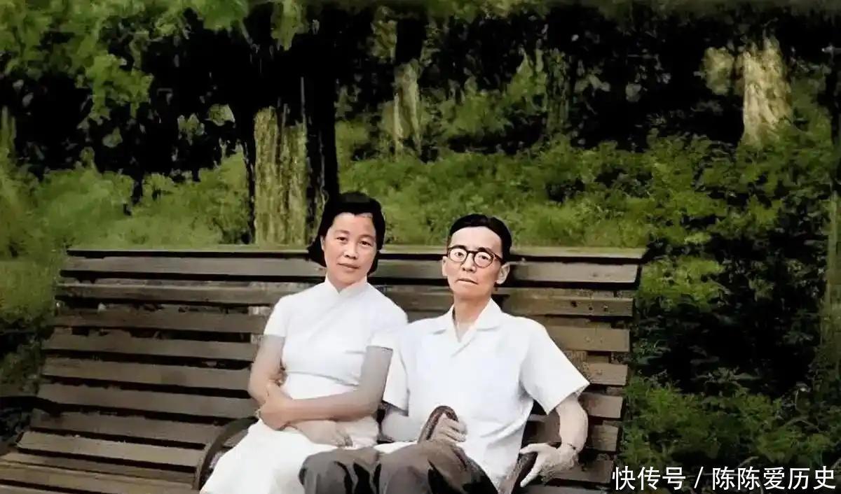 再看看梁思成和林洙再婚后的合照,没有了当年他和林徽因站在一起时那种惊艳的感觉,他看起来就像是一个普通的老头,坐在那里神情疲惫眼神木讷,就像是两个普通的人在一起搭伙过日子,过着平平淡淡的生活。
